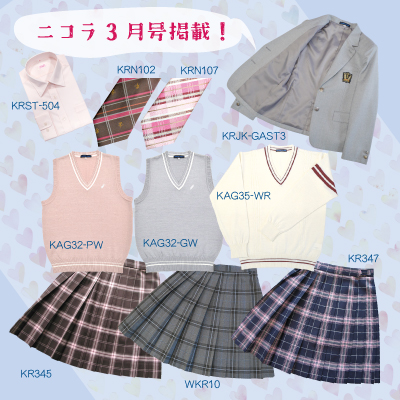 ネクタイ、リボンタイ、シャツ、スカート、スラックスの現行価格を見直すこととなりました。